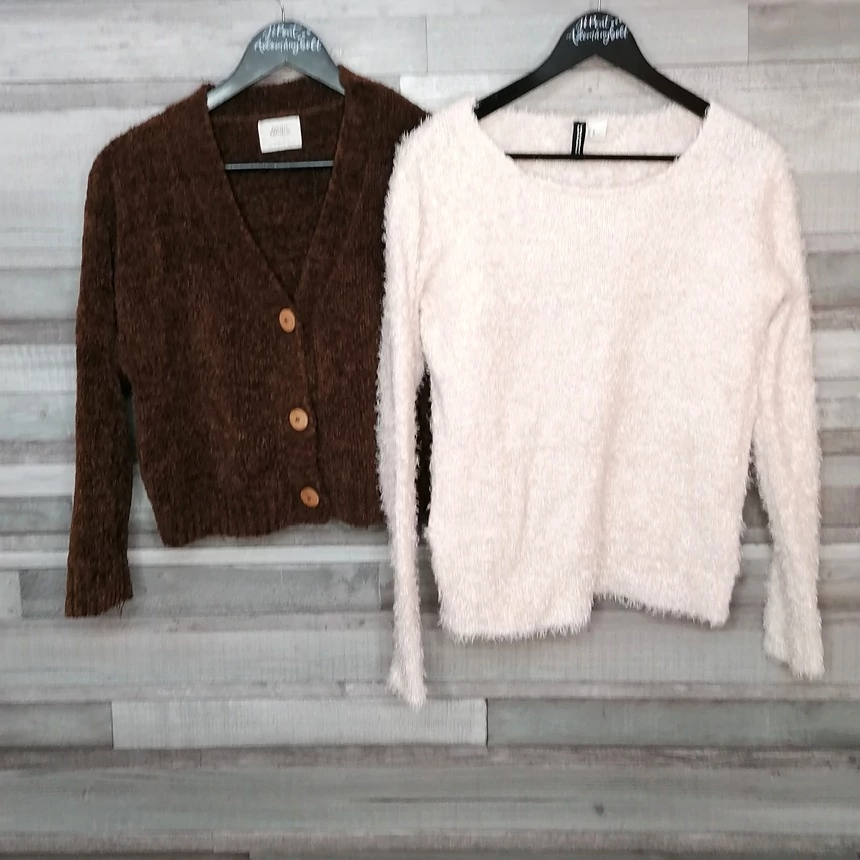Pull&Bear, Divided női puha barna-bézs pulóver kardigán szett M
