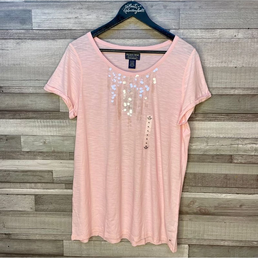 Ralph Lauren Polo Jeans Company rózsaszín díszes póló L