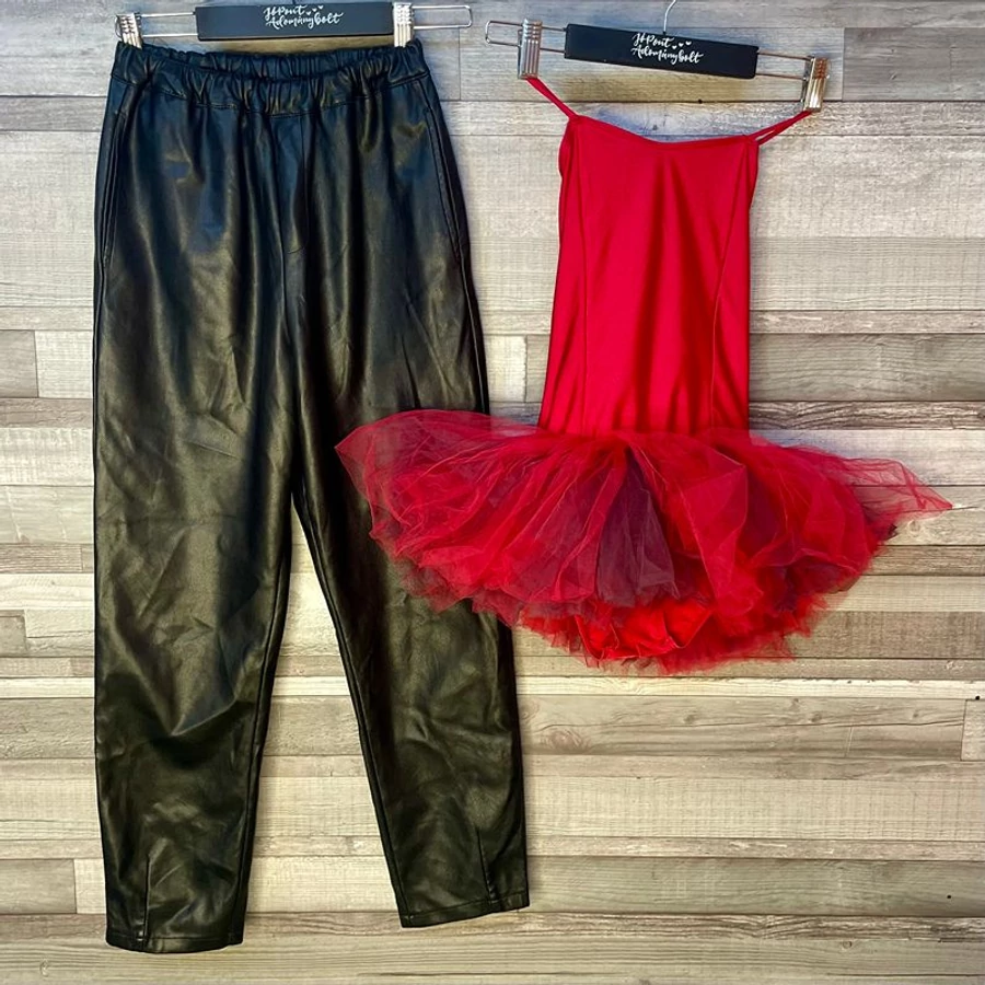 A szett, ami azt üzeni: a tini korszak nem játék. A bőrhatású nadrág vagány, a Sansha body balettes, az összhatás pedig: „igen, anya, ez KELL”.