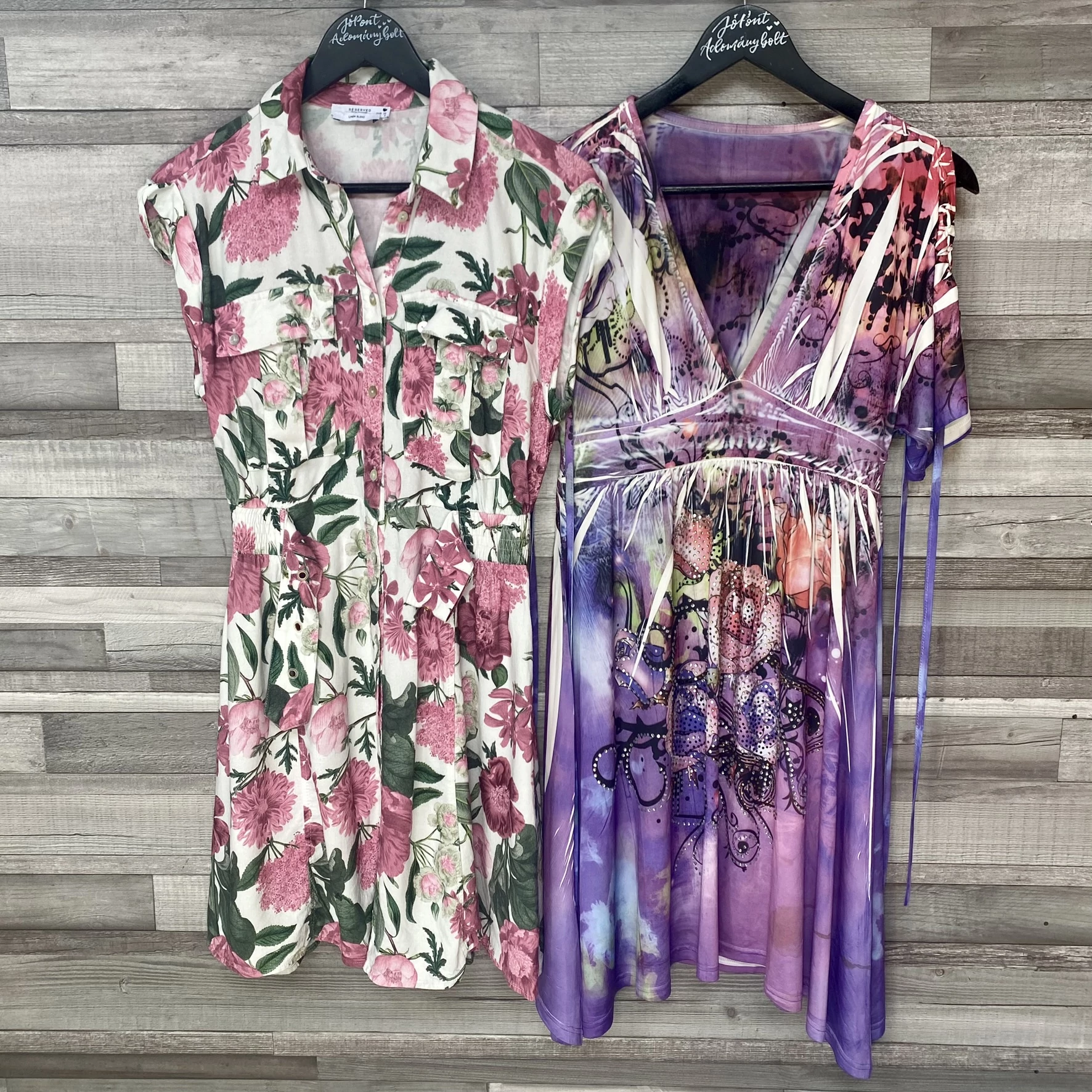 Rózsaszín virágdíszes alkalmi ruha S-M