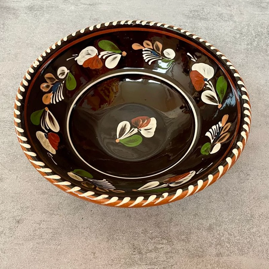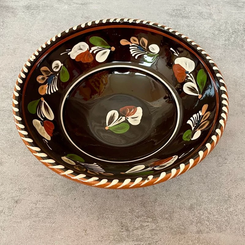 Egy fali dekoráció, ami visszarepít a szocialista kereskedelem aranykorába, amikor még az állami cégek is tudtak népies motívumokkal díszített kerámiákat gyártani. Ideális nosztalgiázóknak.