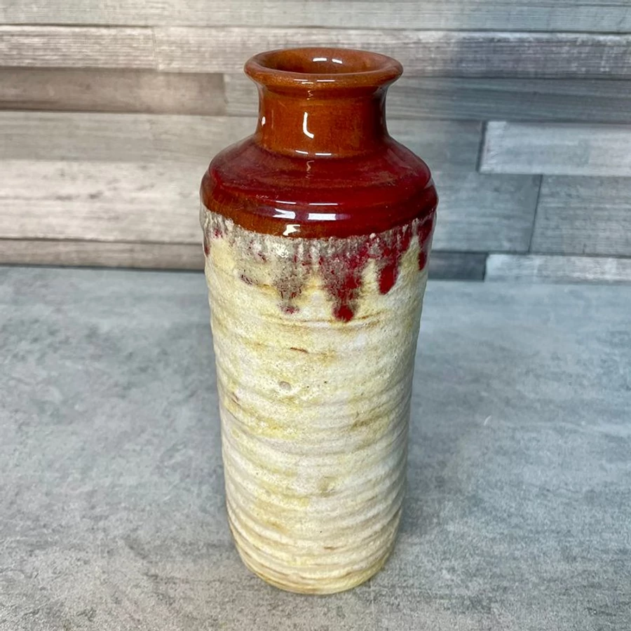 Ez a váza olyan, mintha a hetvenes évekből utazott volna ide – és büszkén hozta a csíkjait. Egy retró darab, ami nem kér bocsánatot a mintáiért.