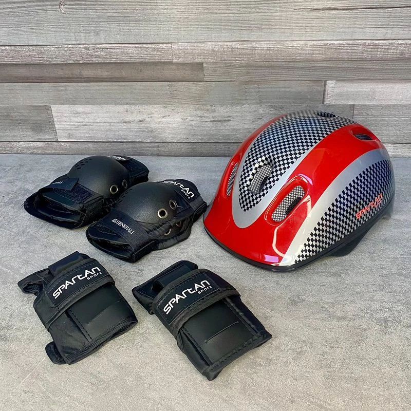 Spartan Sport bukósisak és térd-alkar-könyökvédő gyerek protector felszerelés S-M
