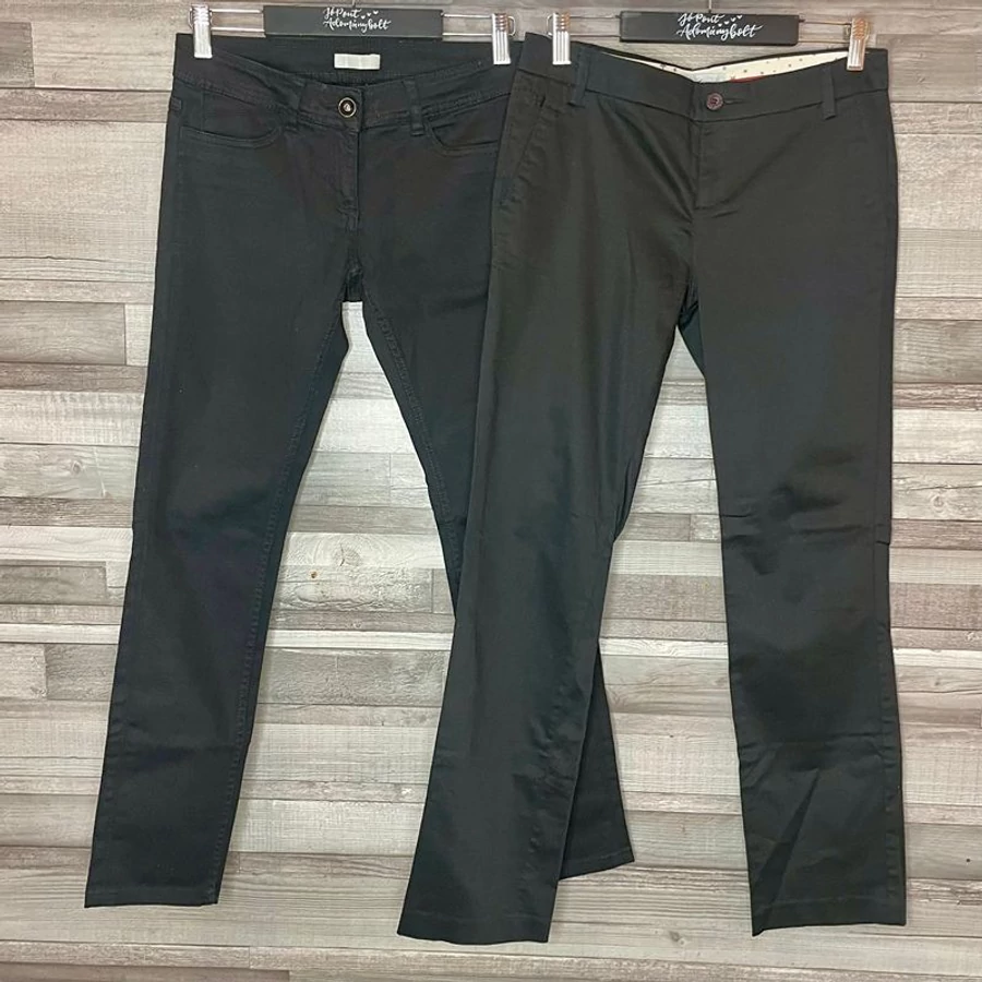 Ez a szett a ruhatárad sötét lovagja. Két fekete nadrág 36-os méretben, amik annyira klasszikusak, hogy valószínűleg soha nem mennek ki a divatból (vagy már eleve benne vannak harminc éve). A Springfield és a Promod neve garancia arra, hogy nem esik szét rajtad a nadrág az első leülésnél. Ha unod a színeket, vagy csak egyszerűen mindenhez feketét hordasz, ez a te csomagod.