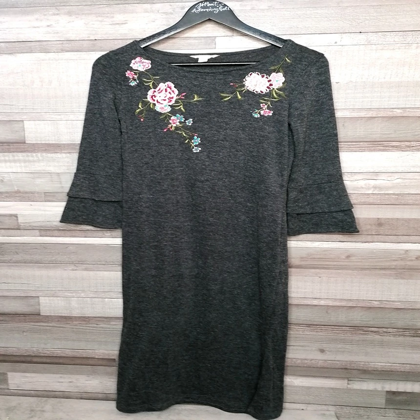 Springfield szürke női háromnegyedes ujjú hímzett vállú ruha S-M