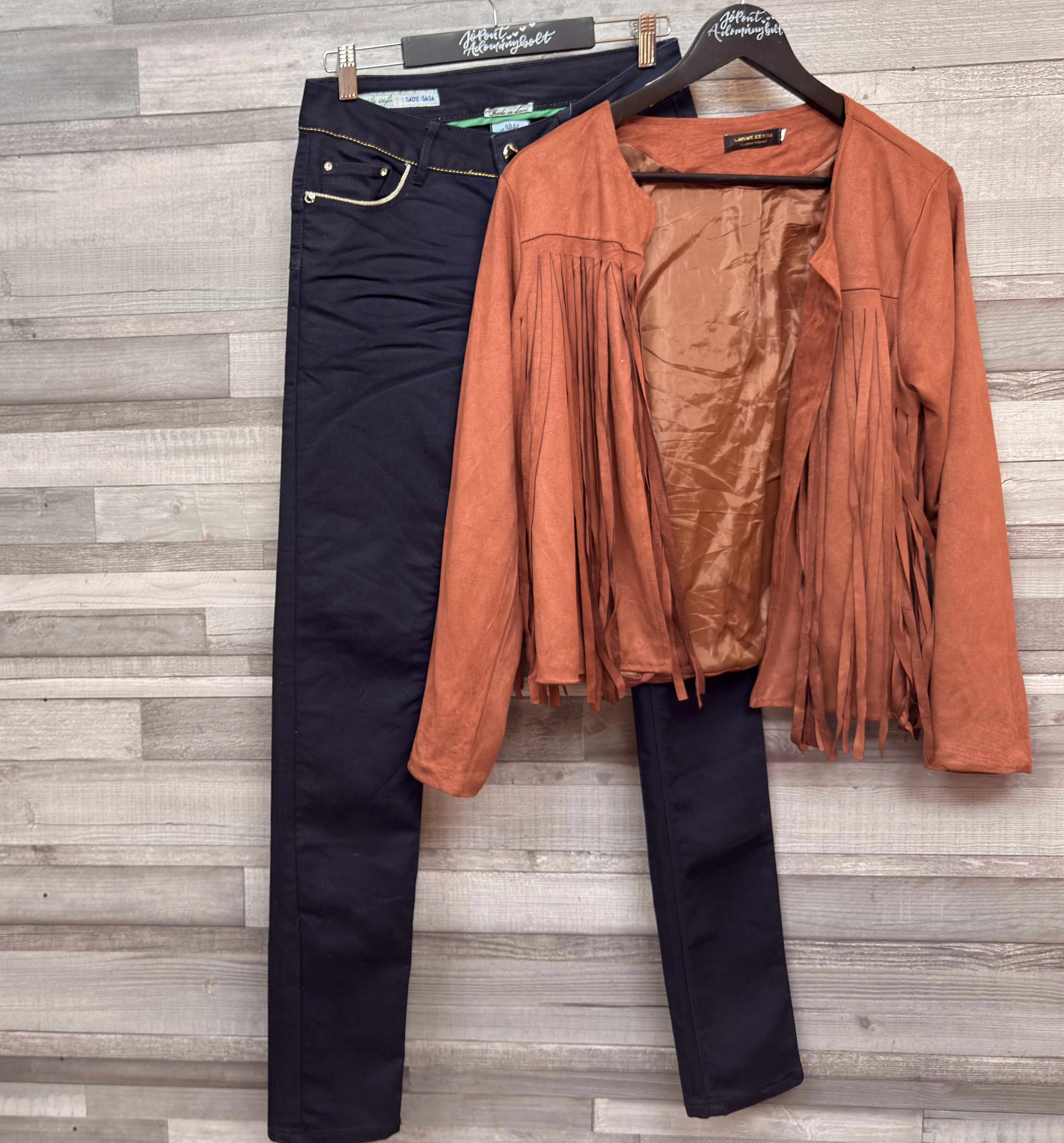 A rojtos dzseki mozog veled, a farmer nadrág pedig stabil alapot ad minden „ma kicsit vadabb vagyok” hangulathoz.