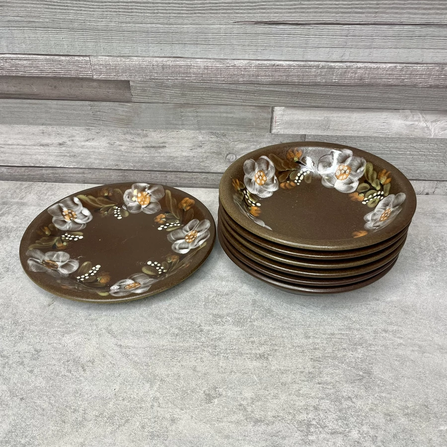 Városlődi barna virágmintás kerámia tányér szett