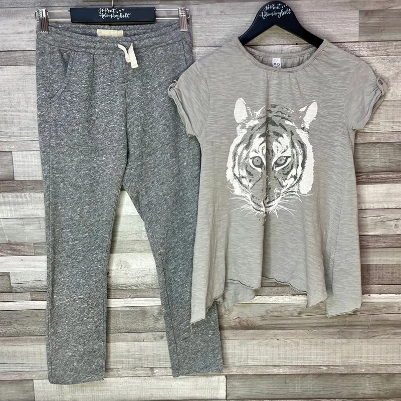 H&M szürke-rózsaszín, Esmara fekete lány leggings szett 146/152