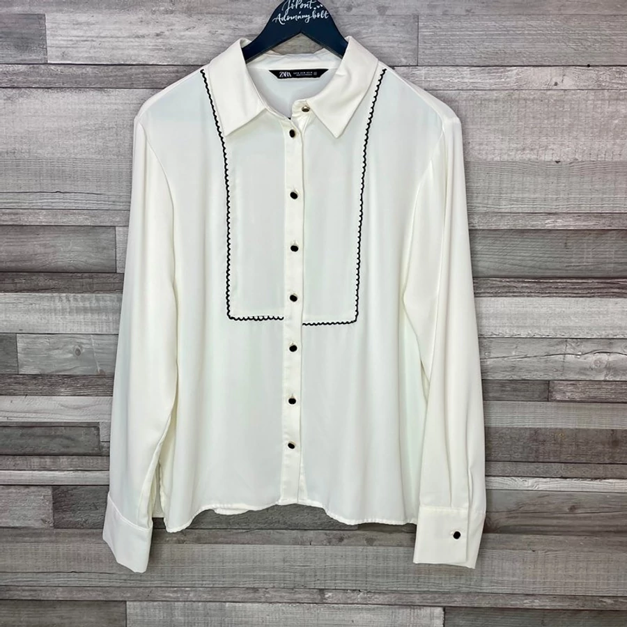 Zara törtfehér elegáns blúz fekete-arany gombokkal M