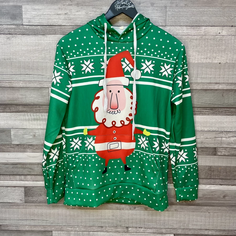 Zöld kapucnis, mikulásos karácsonyi csúnya pulcsi M